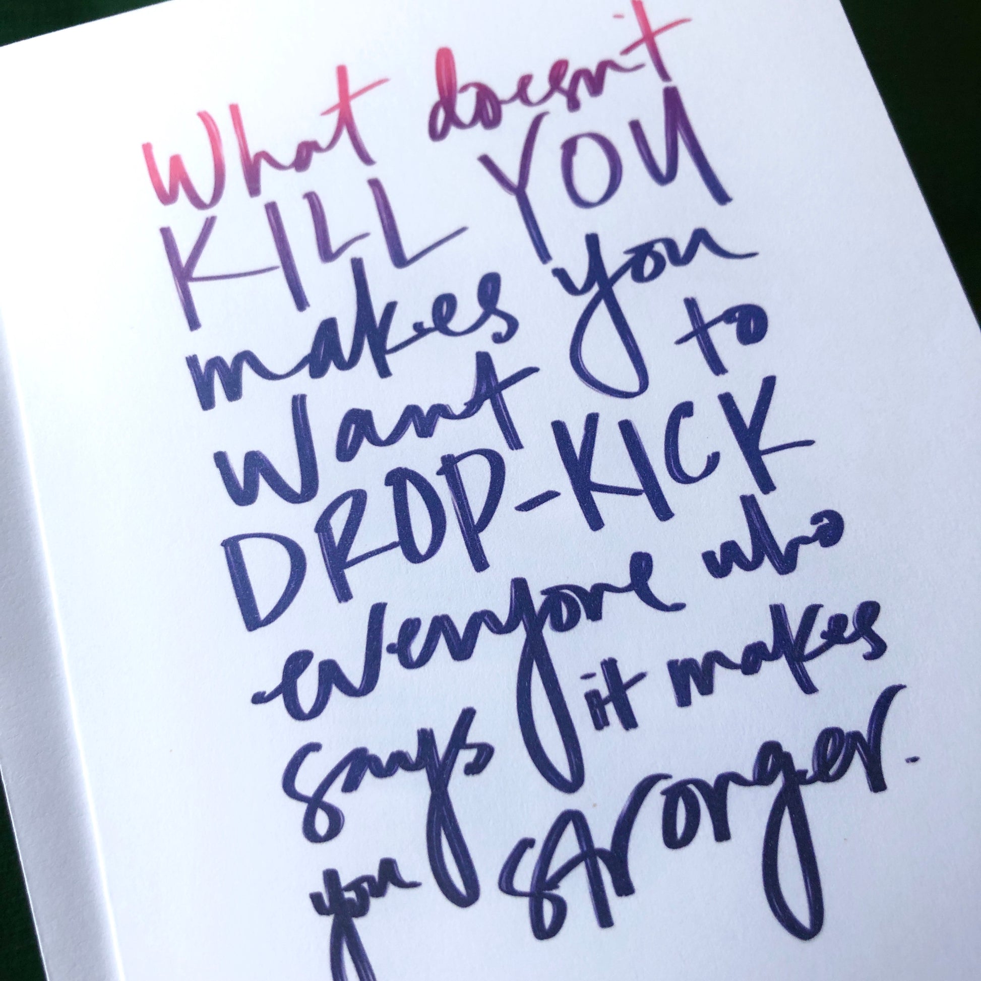 “What doesn’t kill you makes you want to drop-kick everyone who says it makes you stronger.”