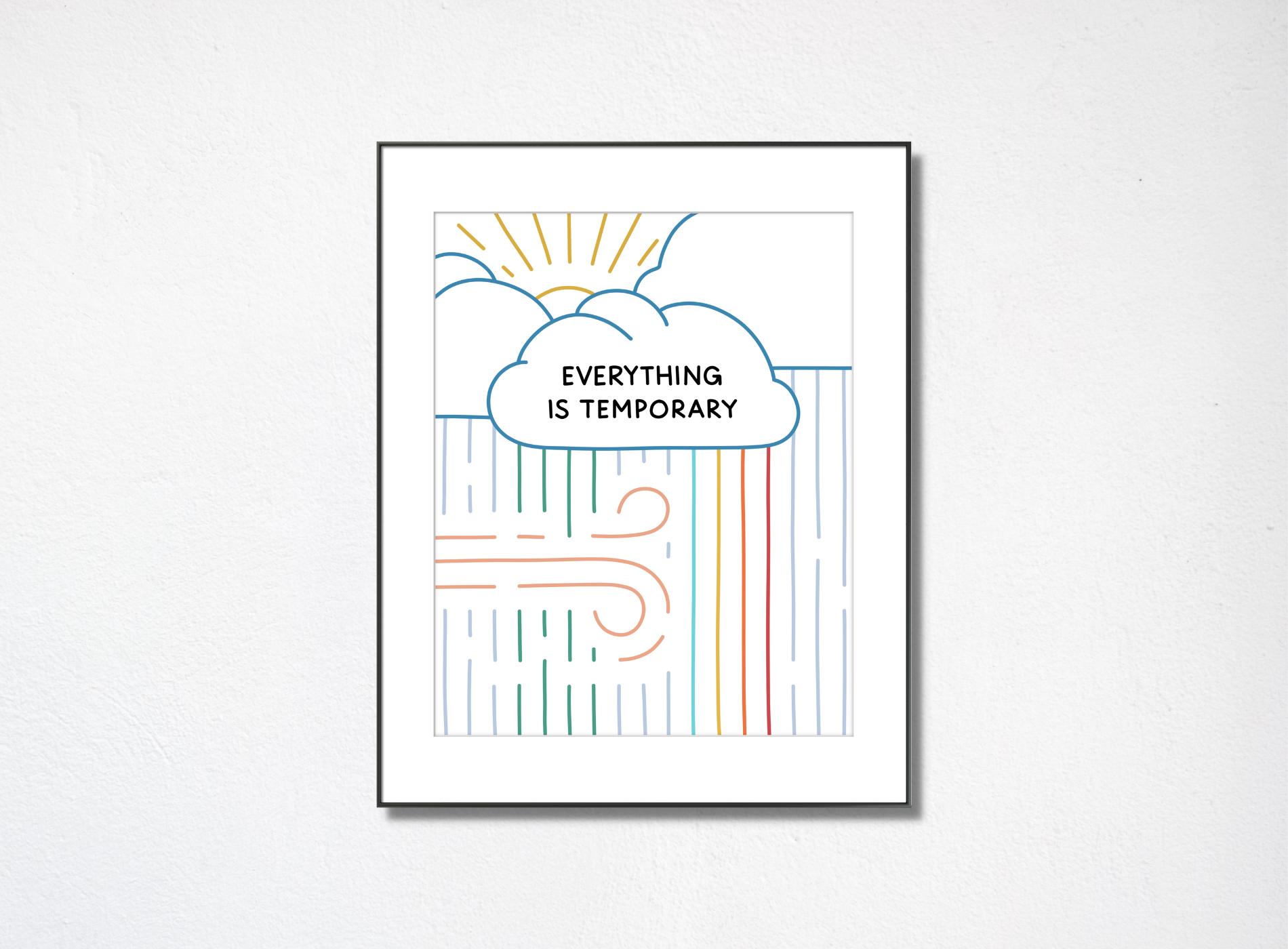 "Everything is temporary", the good and the bad. This print serves as a gentle reminder for when we're in the thick of it, those feelings are temporary and likewise, when things are great, they're also temporary so let's appreciate them while they last.