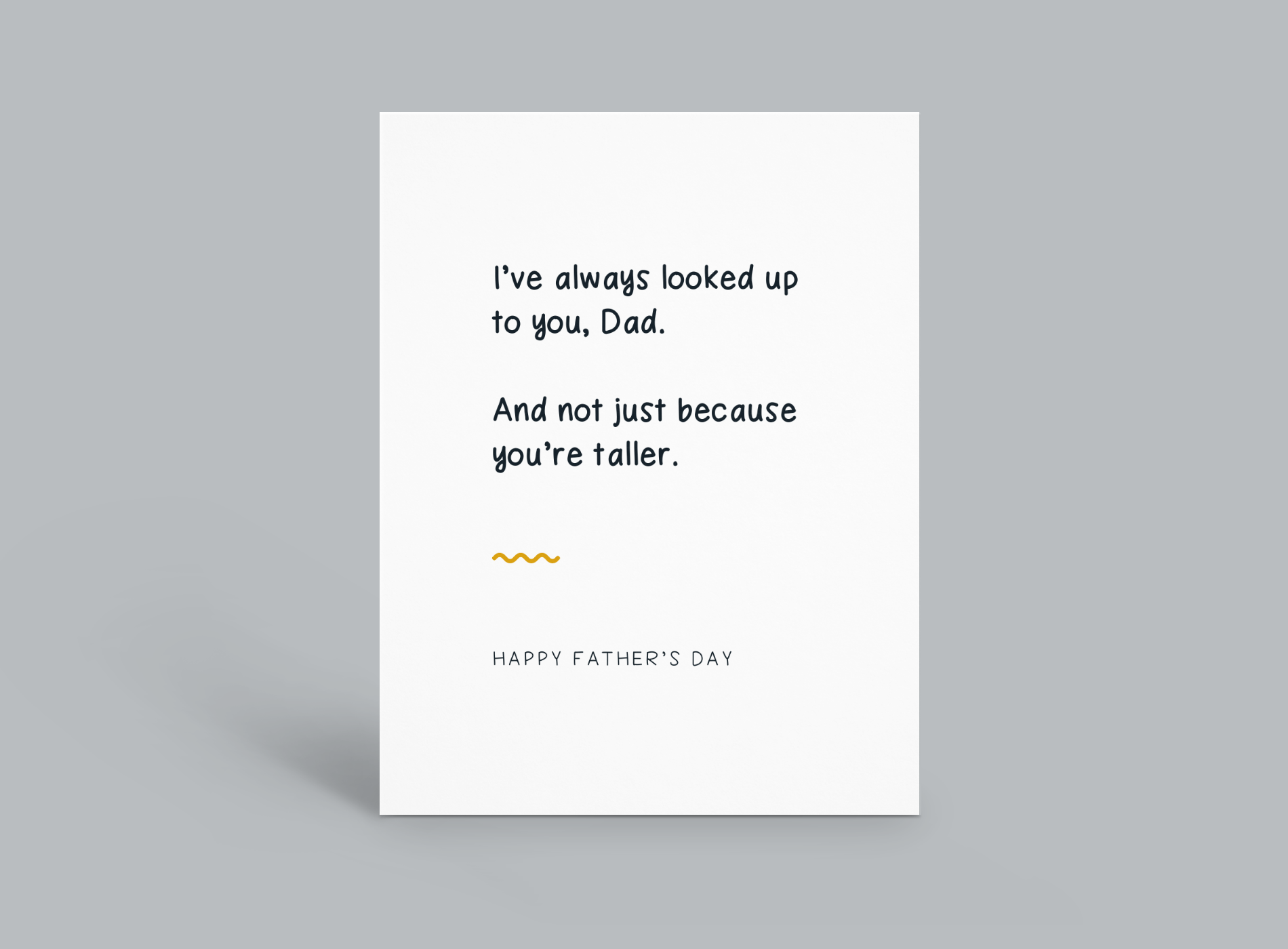 "I've always looked up to you, Dad. And not just because you're taller. Happy Father's Day"
