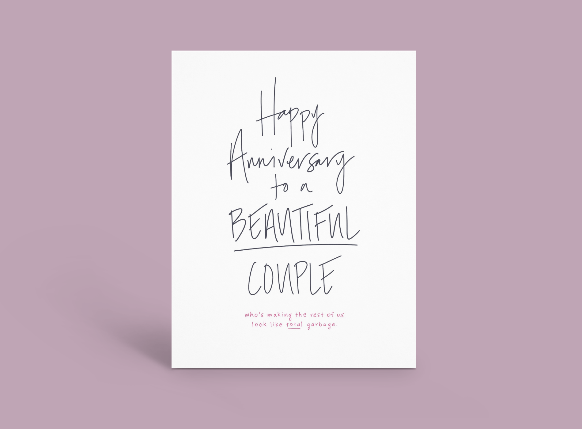 An anniversary card to give the hottest couple you know. To tell them they suck I mean that you love them and you're so happy for them.