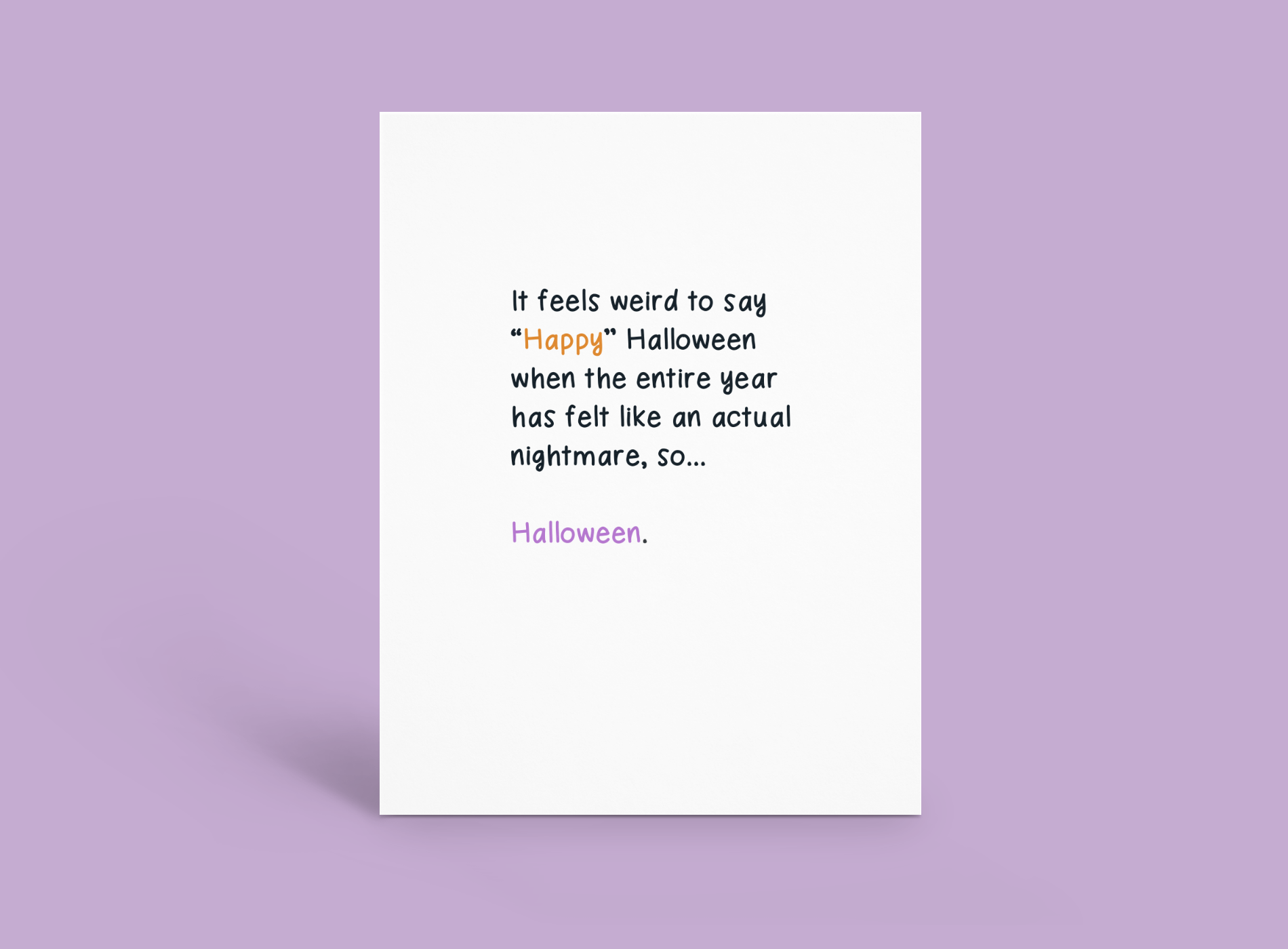 "It feels weird to say *Happy* Halloween when the entire year has felt like an actual nightmare, so… Halloween.” A truly relatable card for just about everyone.