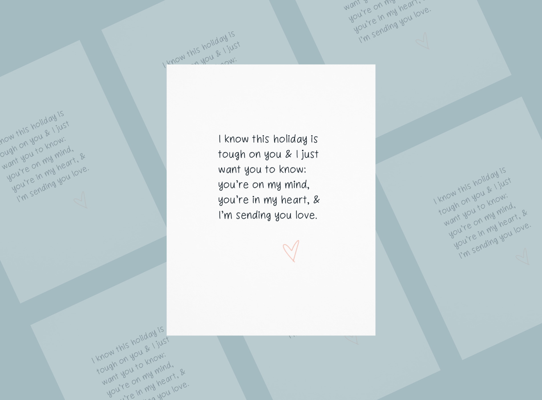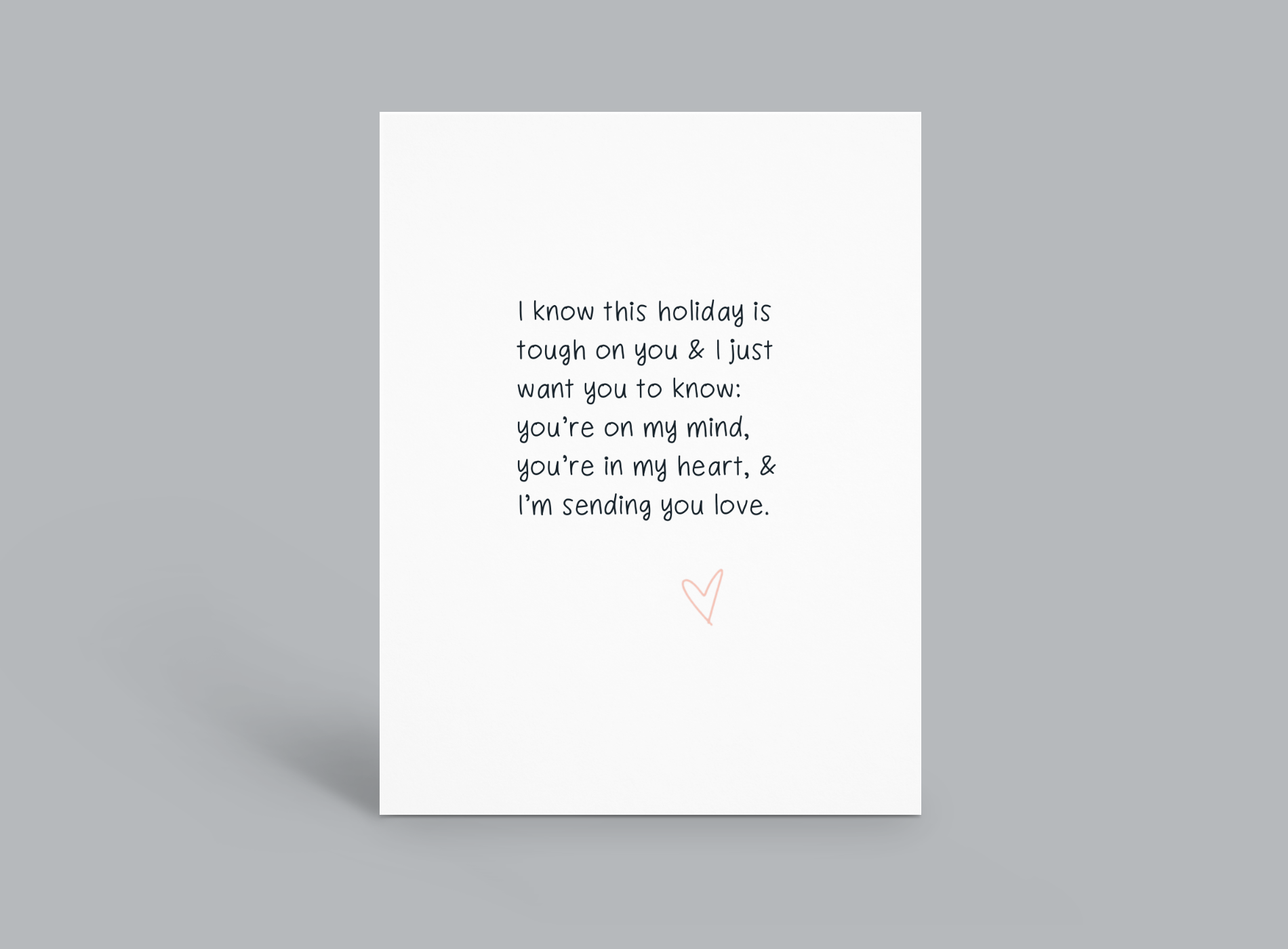 During the winter, it isn't "the most wonderful time of year" for everyone. In the Spring, it's not always a "Happy Mother's Day" or Father's Day, especially if/when it's the first since losing someone special. This card lets you easily show up for others during what might be the hardest time of year, and a boxed lets you be prepared for each time someone needs it.