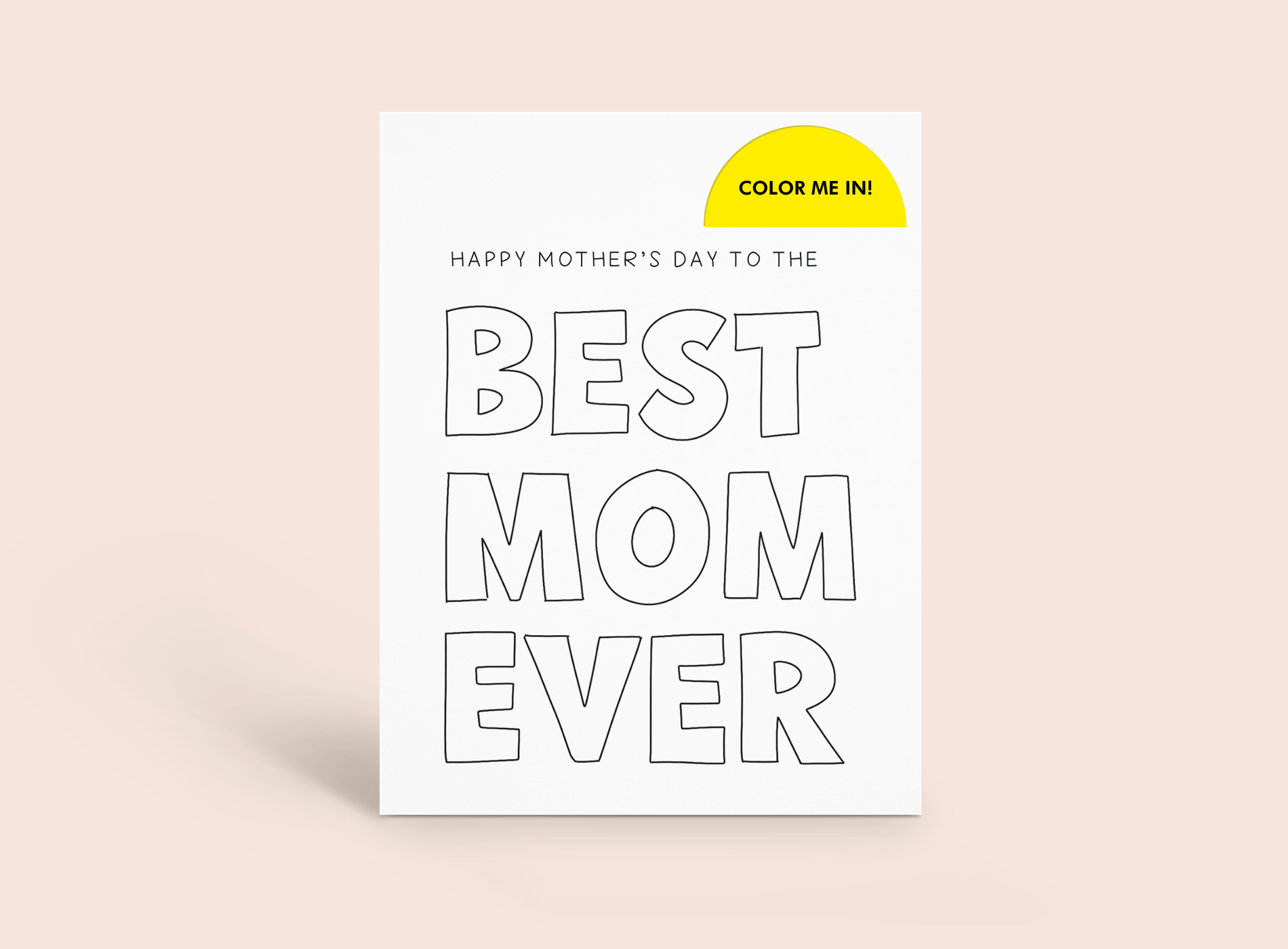Handmade without the mess! "Happy Mother's Day to the BEST MOM EVER" with plenty of space for a little one to make it their own. Purchase the actual card or a printable version if you're short on time. Either way, Mom will love it.