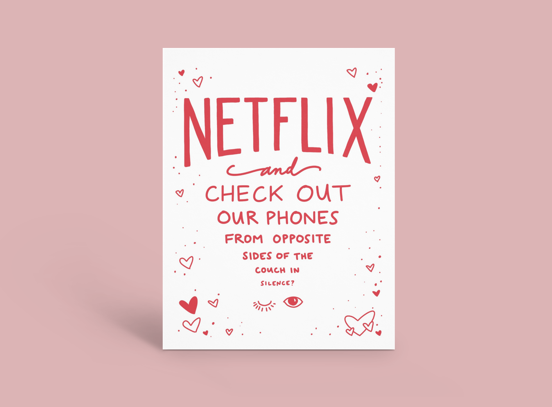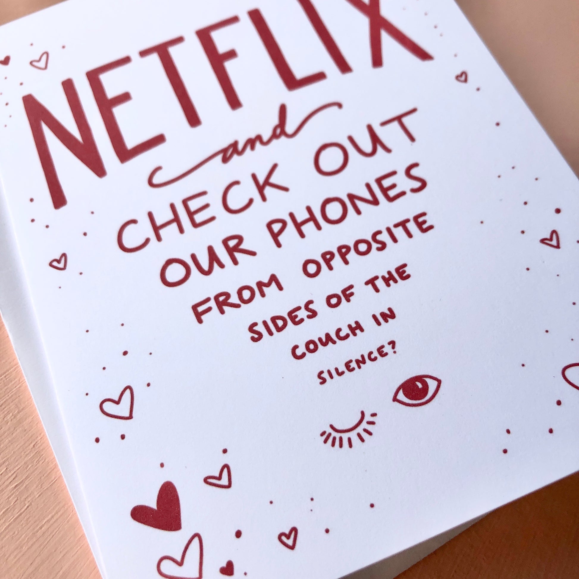 "Netflix and check out our phones from opposite sides of the couch in silence?"