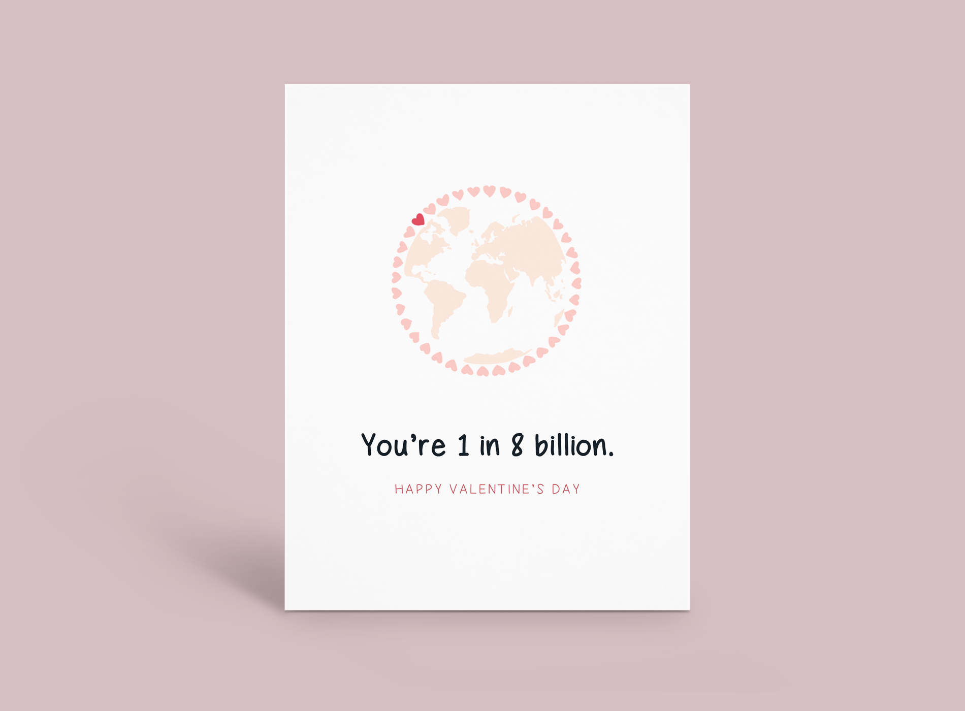 So, I updated it. Introducing the *fixed* compliment card! "You're 1 in 8 billion. Happy Valentine's Day." This card works for people of all ages and of any relationship to you, be it a child, your S.O., your childlike S.O., a "Galentine", a co-worker you appreciate... seriously anyone.